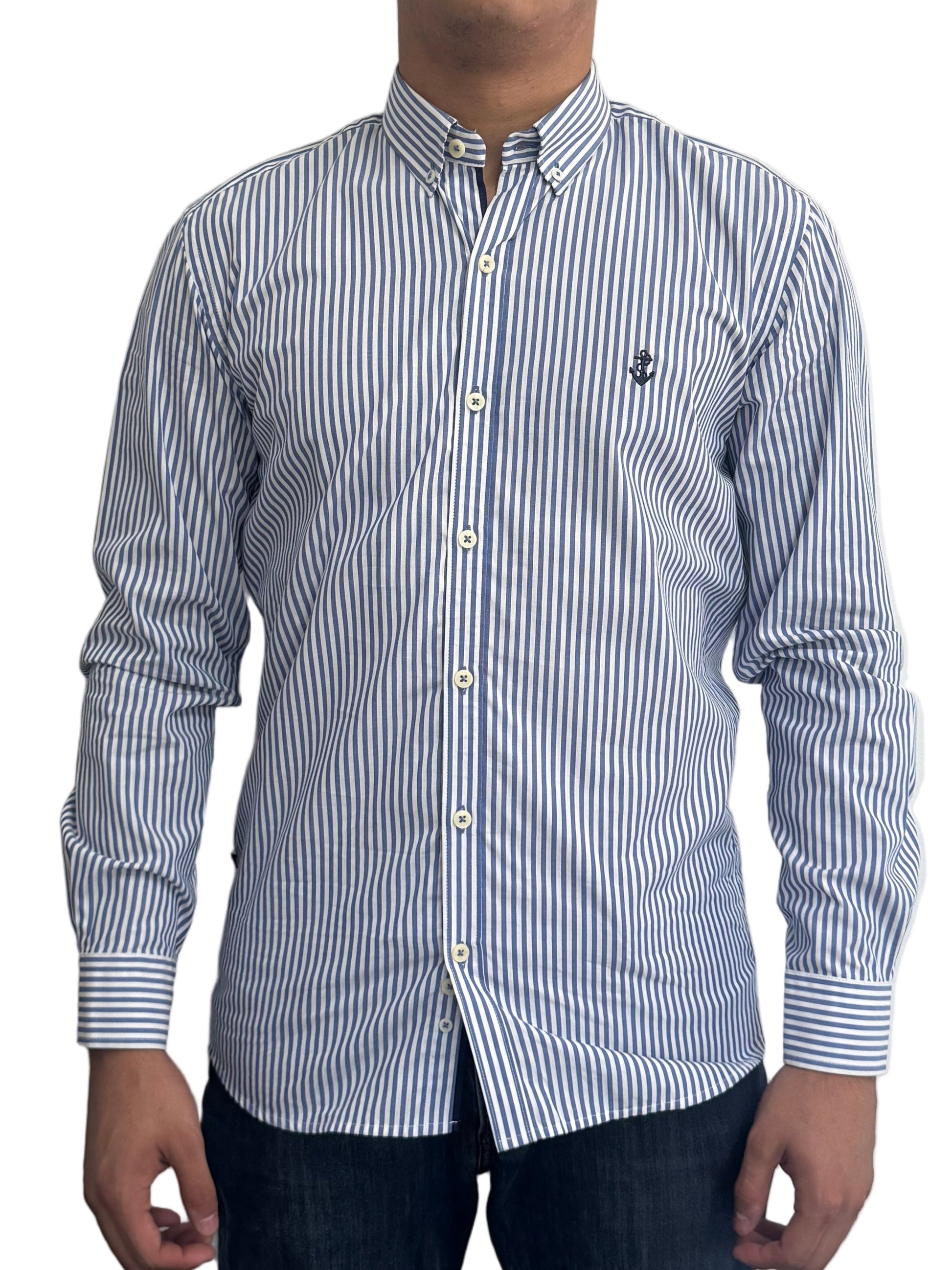 Esta camisa de algodón combina rayas azules y blancas en un diseño clásico y versátil. Su tejido natural brinda comodidad y transpirabilidad durante todo el día, ideal para quien busca estilo y funcionalidad. Perfecta para looks formales o casuales, aporta un toque sofisticado sin sacrificar la frescura ni la durabilidad.